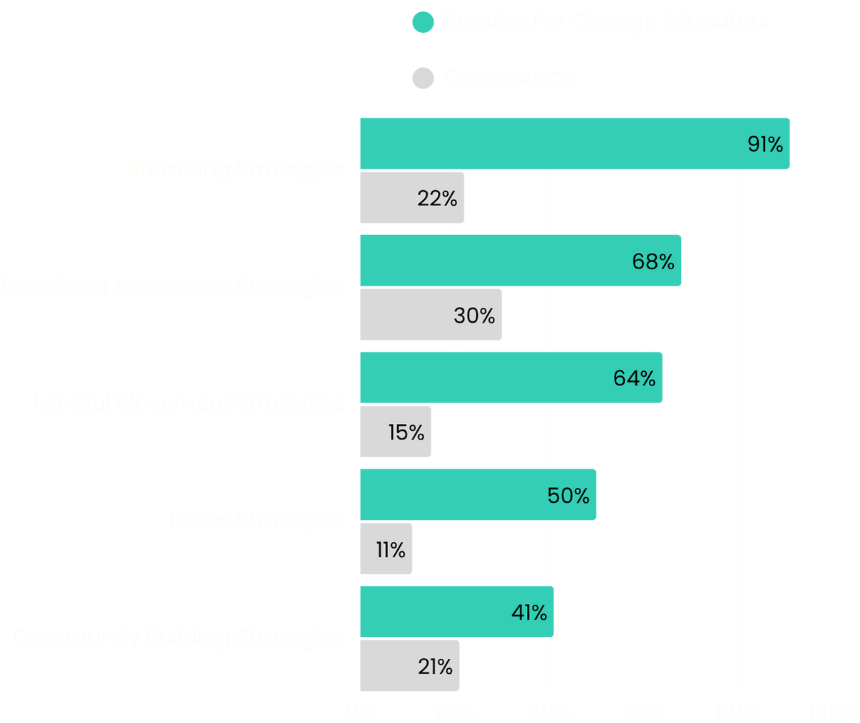 Breathe For Change meet ESSA Level II & III for Moderate and Promising Evidence. Research has shown that educators trained by Breathe For Change report using human-centered strategies significantly more often than their peers, leading to stronger classroom relationships, higher student engagement, and improved attendance.
